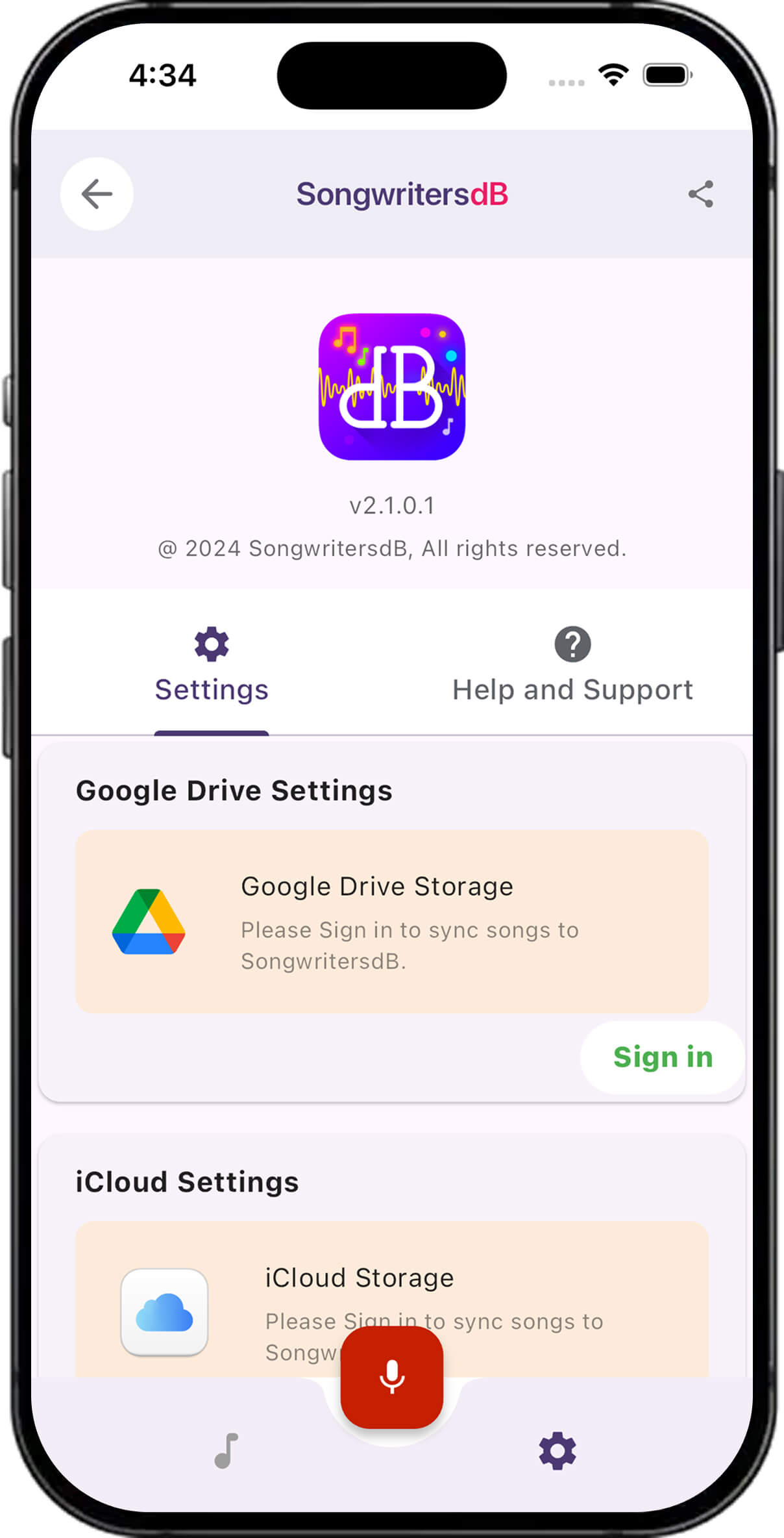 Our songwriter app offers a seamless, secure experience with Email and Google sign-ins, intuitive recording tools, and Google Drive integration for easy cloud syncing and sharing. With a Force Update feature, multi-device support, and a simple delete account option, you have complete control over your creative process. Continuously enhanced to support your music journey, our app helps bring your unique sound to life. Join us and let your creativity shine!
